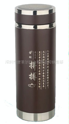 产品型号: KLE-ZTC023产品名称: 天然紫砂产品描述: 紫砂含有多种人体所需的微量元素和矿物质,以天然的矿物组成,蕴藏在岩石和普通陶土的夹层中,质地细腻,含铁量高的特种陶土,经1200℃高温烧成,泡茶不走味、盛夏不易馊,寒冬腊月注入沸水,不因温度急变而涨裂,经过长时间使用后,就是倒入一杯白开水,也能散发出阵阵幽香。紫砂杯外壳选用高档的优质不锈钢精制而成,配合以天然的紫砂内胆,集绿色健康、豪华稳重、高贵大方为一体,是您居家旅行的伴侣。