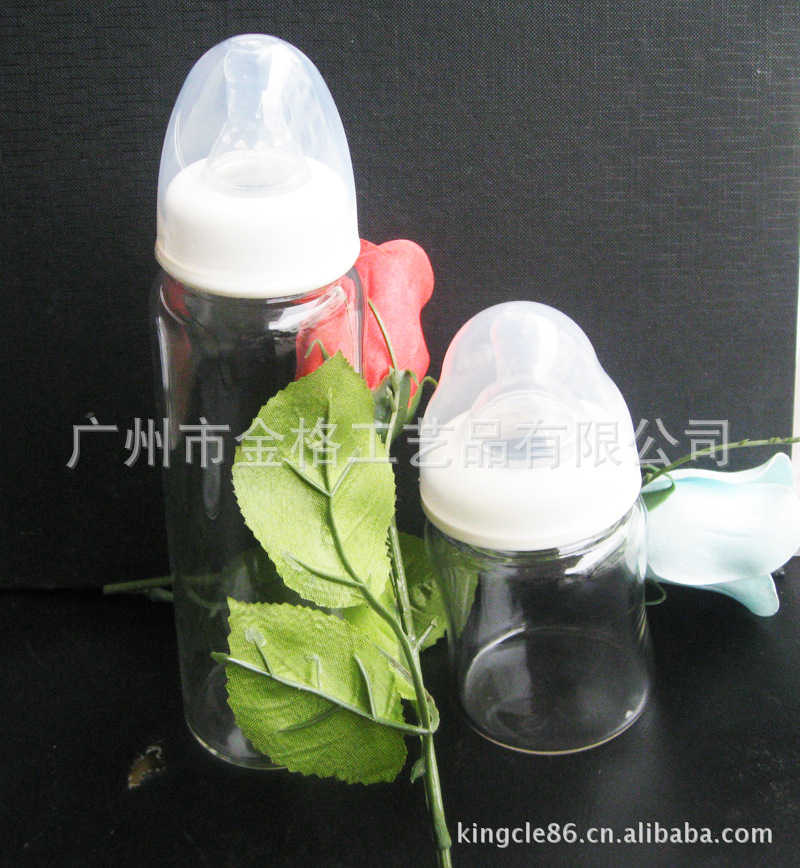 专业生产高硼硅奶瓶.图片中的产品为240ML玻璃奶瓶 瓶身:耐高温高硼硅玻璃奶瓶,绝对不含双酚A,无重金属,通过温差冲击试验。可以高温消毒。螺纹盖:PP(120℃)防尘盖:PP(120℃)附:奶嘴:食品级液体硅胶(120℃) 产品特点:宽口奶瓶调奶和清洗更方便。宽口奶瓶嘴扁圆仿真造型,宝宝吮奶就像吮母乳一样亲切。宝宝吸奶时奶嘴孔洞朝上,能让牛奶和唾液充分混合,有助于更高的消化。仿照天然的喂养方式,有助于宝宝口齿和牙齿的 发育。