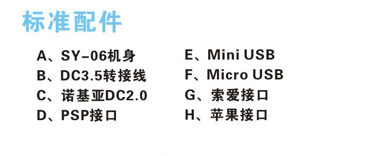 适用:买一送六,配送苹果,诺基亚,索爱,PSP,