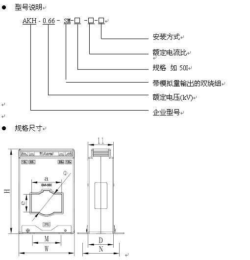 AKH-0.66SM型双绕组电流传感器可有两路输出,其一(1S1,1S2)输出AC0-5A或0-1A,与测量、计量装置配套使用;其二(2S1+,2S2-)输出DC4-20mA,与自控仪表(如PLC)配套使用,其中辅助电源DC24V由PLC供电。