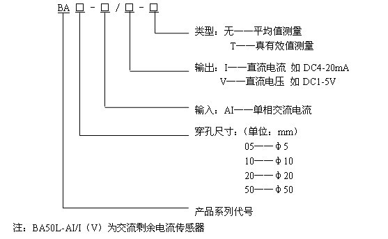 BA50L-AI 测量范围 AC 0~(0.1~1)A |