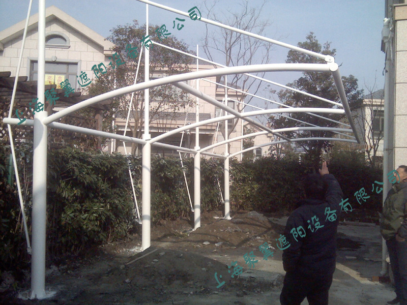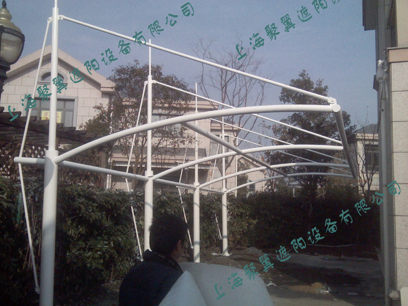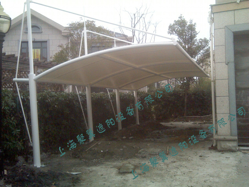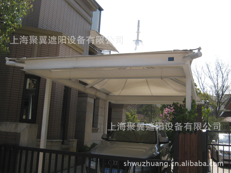 137平方米别墅私家车停车棚JY20膜结构洗雨棚,采用高强度钢结构龙骨抗震,防风12级,使用寿命8年以上!是家居汽车雨棚的最佳选择,2013新型汽车雨棚环保特色汽车棚之首选产品!了解产品详细请至电:400-021-3310 上海市聚翼遮阳是一家主要从事遮阳膜技术开发、设计、制造的企业厂家,公司位于上海市松江区洞泾镇西张泾路16号,沈海高速莘G15方向四泾镇出口,近莘砖公路砖桥贸易城。免费上门测量设计出方案图(400-021-3310是24小时的哦!)。