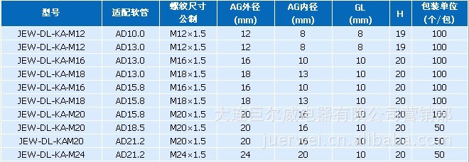 JEW-DL-KA型软管接头是软管的配套产品,可接入设备箱体上,也可根据选用螺纹接入进出口为内螺纹的电动设备上,只需软管插入接口即可。