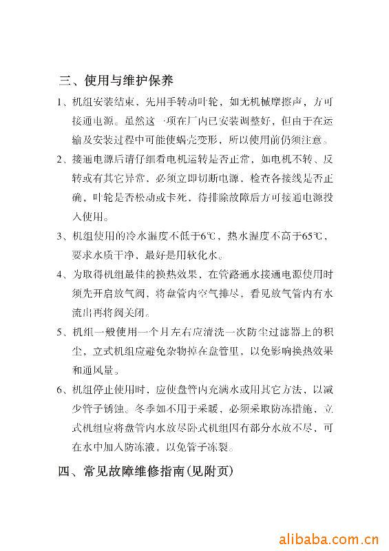 3、名义工况热量测定:室内干球温度21℃,供水量与名义工况时的流量相同。