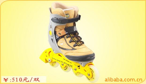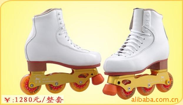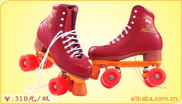 溜冰场双排出租用鞋:RS-808A 设计独特,这款采用抗拉、强韧、耐磨、单层上等头层牛皮为鞋面皮制成的皮鞋,并在鞋统最上层另加一圈柔软的海绵衬边,使其穿起来倍感舒适,且轻便、透气、耐用,并装配最新式之双排底台。底座的重心低、好溜、轻巧、灵活等多项优点,刹车橡皮可因磨耗情况而360度随意调整高低位。