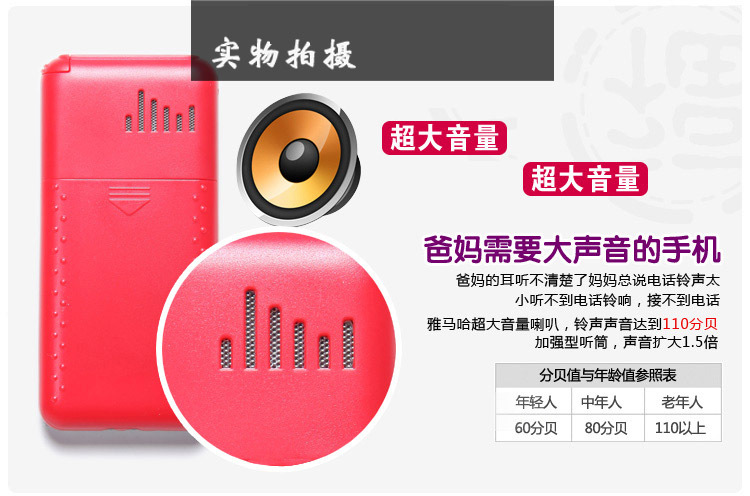 3、超大音量,采用26*18双磁大喇叭,铃声声音达到110分贝,即使在嘈杂的环境中也能听到铃音,电话一个不漏