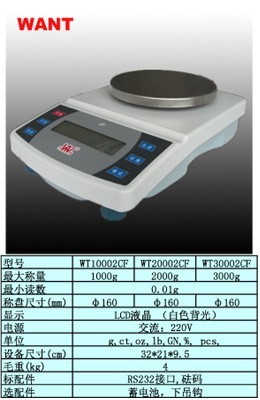 称量准确,反应迅速,流线设计,LCD背光显示,多单位选择,单位状态记忆功能,标定值选择,自动零点跟踪,全量程去皮功能,计数,百分比功能。标配RS232接口。