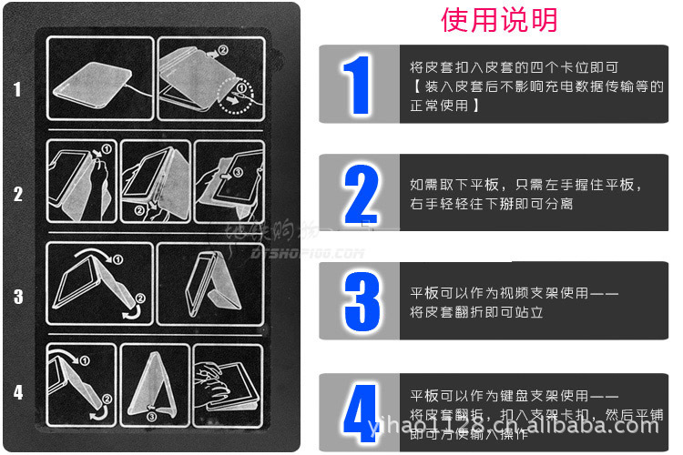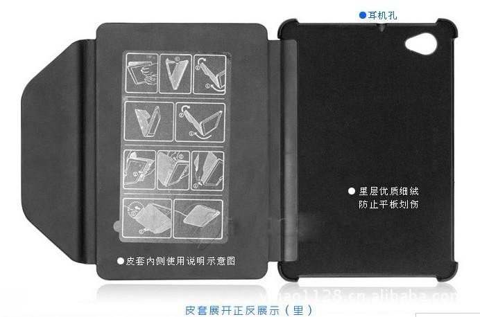 高级超纤皮革,缝线精致,完美保护您的爱机构造:以精简为基调,全触摸,人性化简约完美设计,该款为左右翻开、内插夹式,独立塑胶模,不影响任何按键操作,直接使用基本功能,如同步、充电、调音、拍照、耳机等。