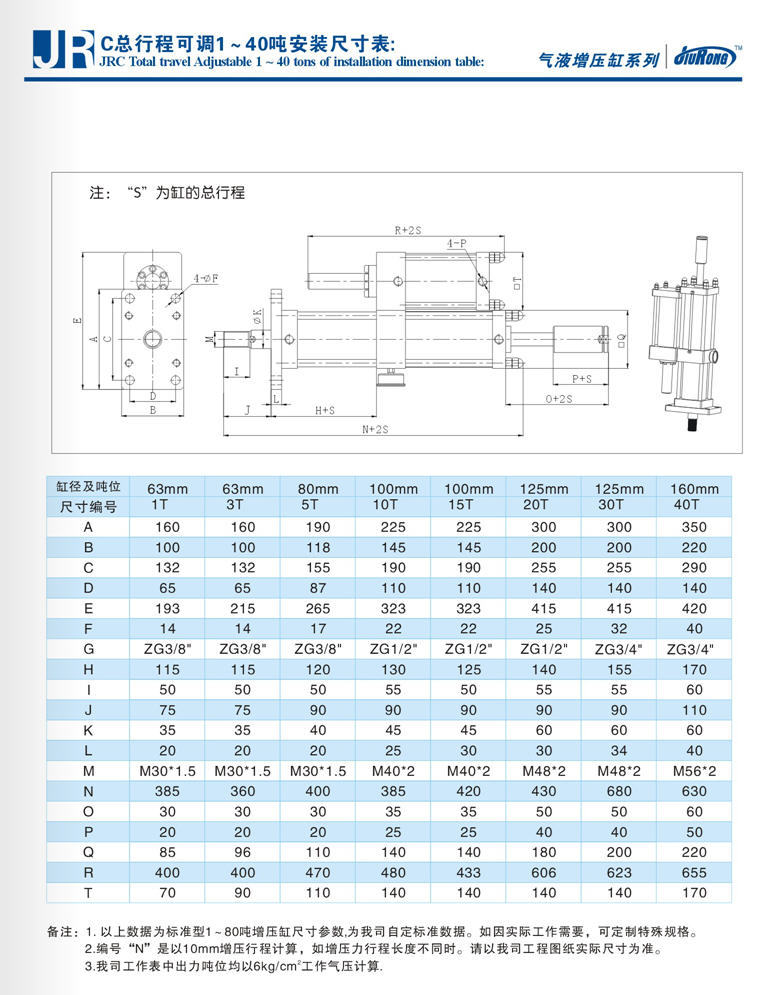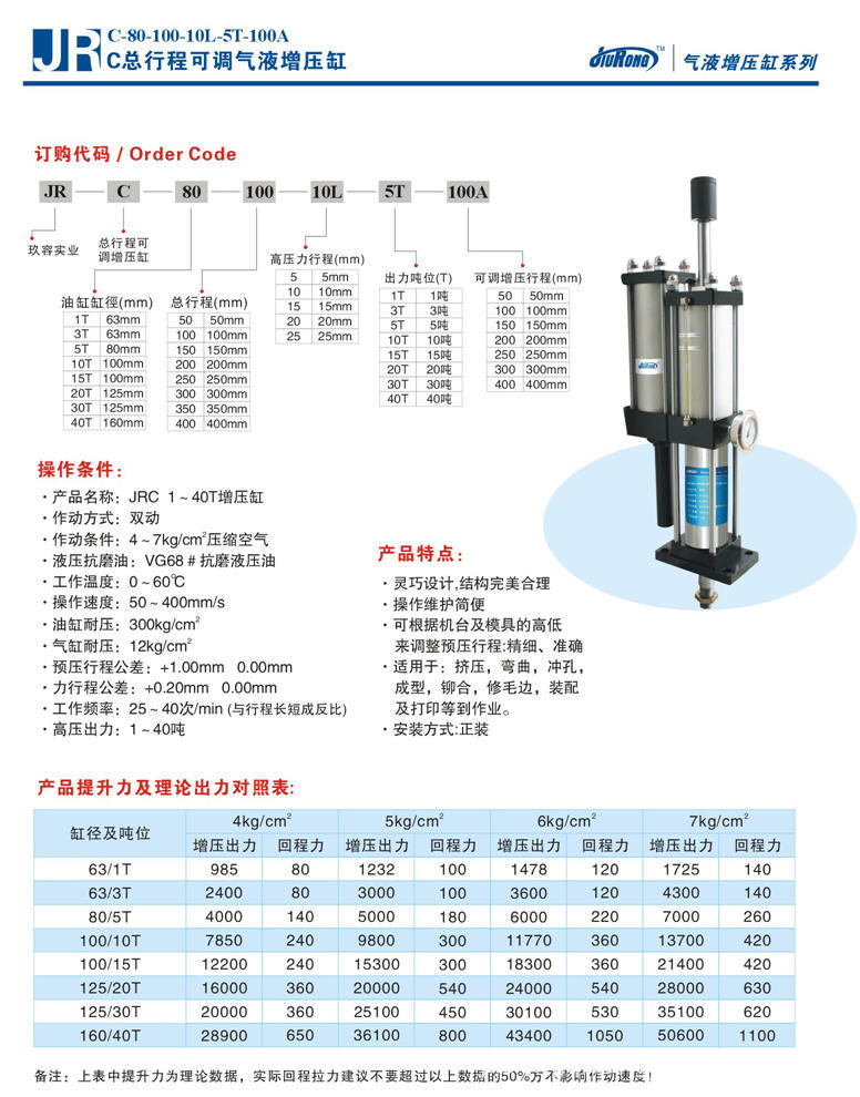 JRC总行程可调节增压缸:其特性在于可根据不同产品需求设置最大总行程.在最大总行程范围里根据产品的实际需求来调节行程从而达到产品成型目的.
