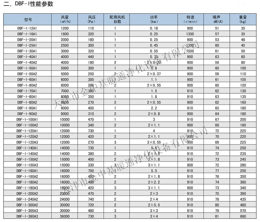 DBF-I型风机箱可根据用户要求在进风口装设能起滤尘作用的空气过滤网,或加设初中效过滤段可用作净化风机箱。
