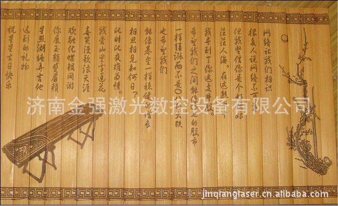 竹木激光雕刻是指利用激光技术在竹制品和木制品上雕刻文字或者花纹。由于激光技术的是无接触的热加工,接触面小,损耗小,容易操作,电脑出图,所以加工效果精美细腻,能满足高品质个性化的加工需要,所以在竹木工艺品加工中应用广泛。