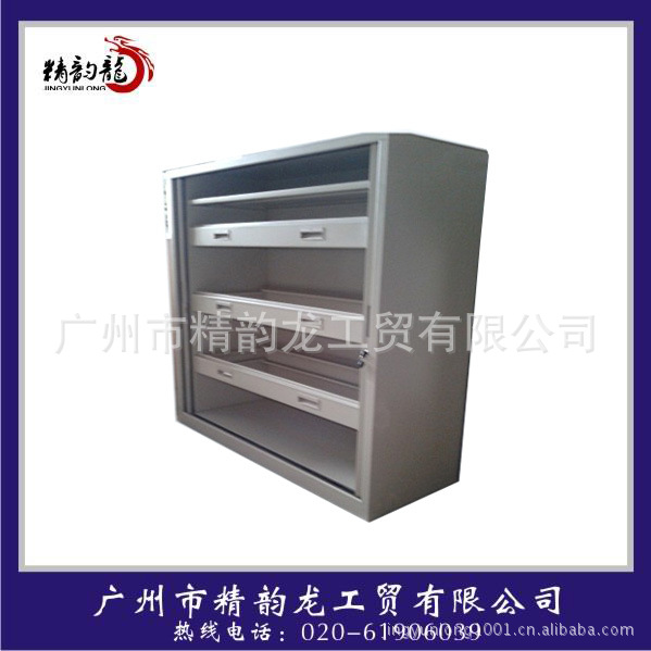 功 能:新型卷帘门设计,自由移动,灵活开关门,柜体侧壁为双层钢材工艺设计,前部卷帘门可以收缩进侧壁中,方便存放文件物品,整体美观大方,是现代汽车维修用品文件柜之首选。