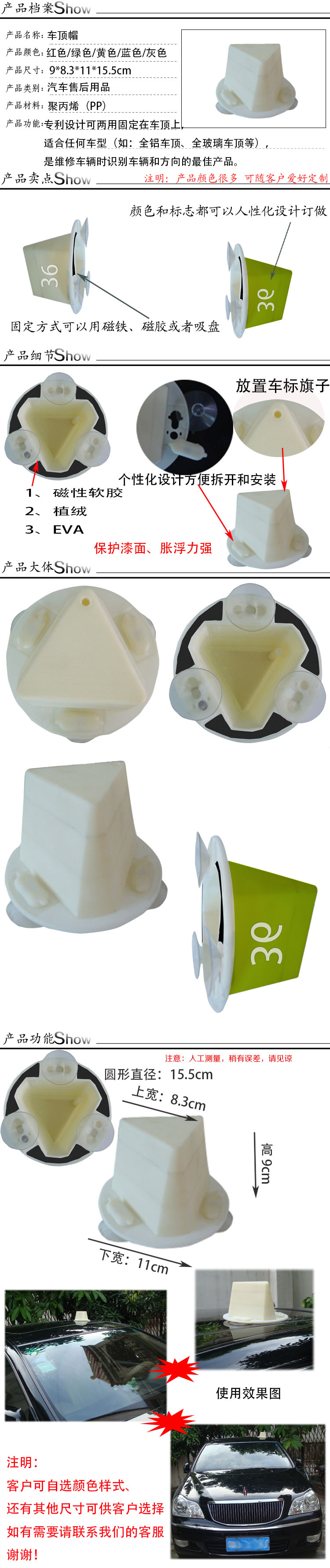 汽车专用静电膜、汽车车衣、工单夹、三件套(方向盘罩,座椅套,脚垫)、磁性车贴、档案夹、钥匙牌、号码牌、高档胸牌、工作帽、工作服 、汽车专用雨伞、专用纸袋、各类单据等。
