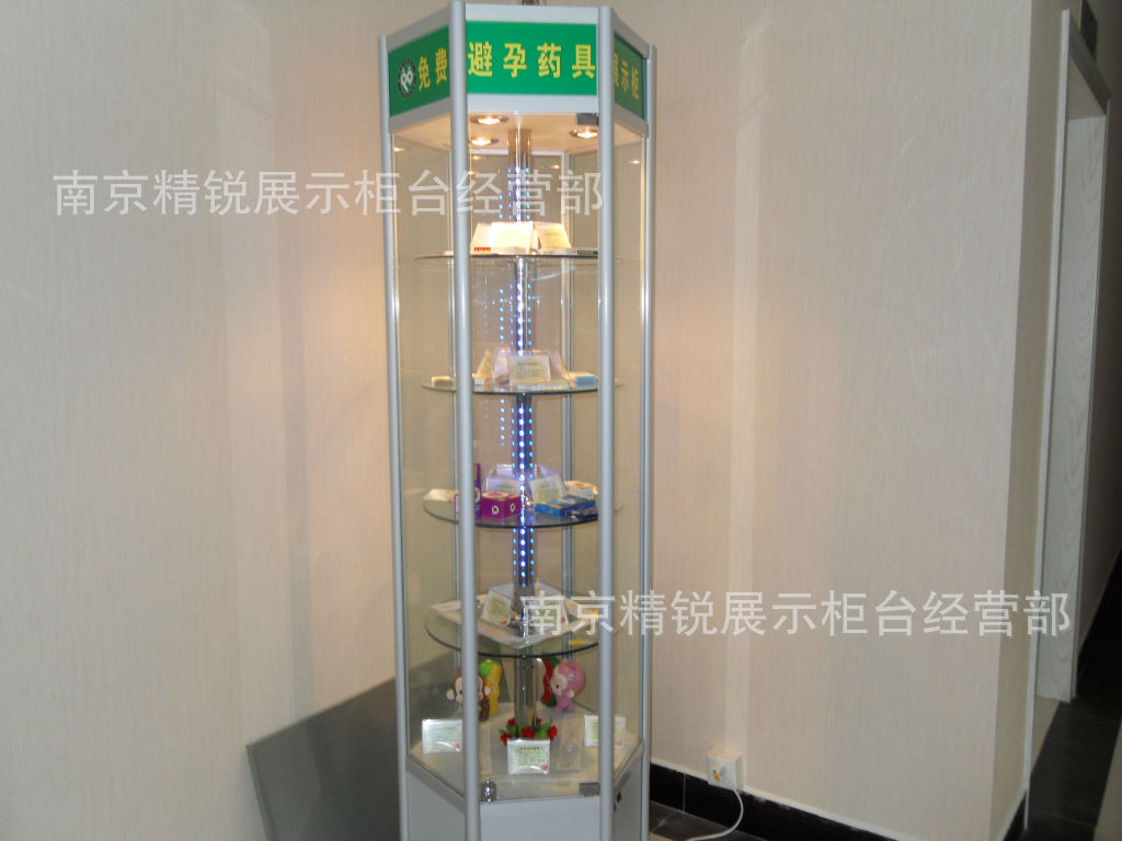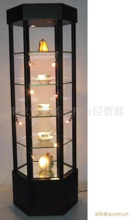 型材主要有黑色·银色。六角旋转柜,对角600cm,高两米。