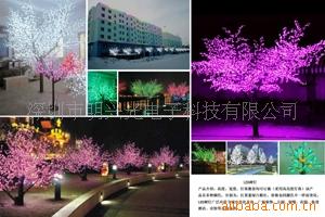 LED樱花树灯,树的主杆为钢管,树枝为钢管或钢筋,外包仿真树皮。均采用高硬度,抗老化环保材质,叶片为柔性抗老化材质,光源为LED颗粒灯,均做防水处理,低压低耗寿命长。