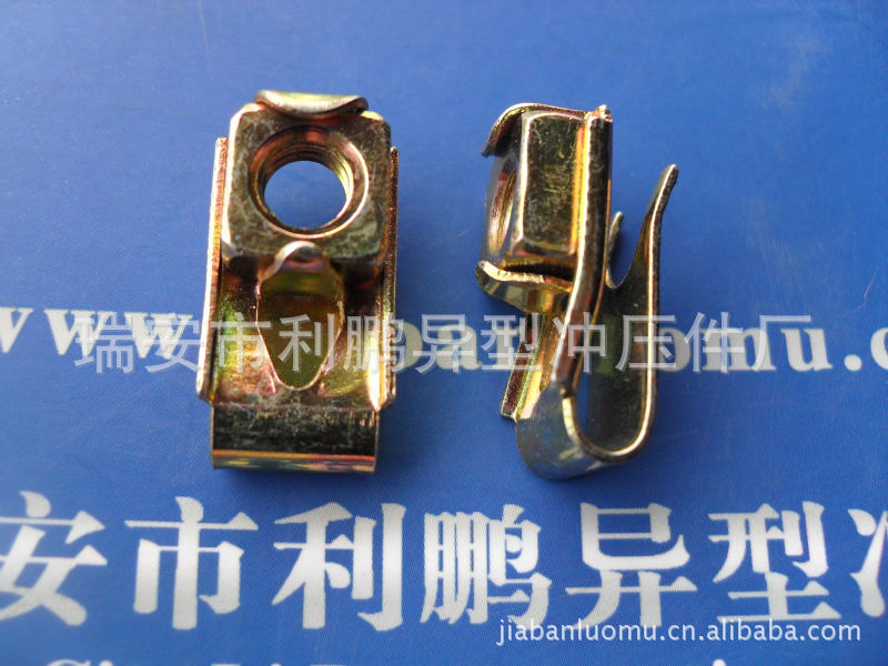 瑞安市利鹏异型冲压件厂是一家从事汽车冲压件专业企业,主导产品:又名板簧螺母、簧片螺母、插片螺母、夹片螺母,我厂位于“中国汽摩配之都”--瑞安,历来“以客户为中心,以市场为导向”为目标准则;多年来以开发新产品快、精度高、定价合理、诚实守信,深受用户好评;本厂具备模具设计开发、制作,产品的机械加工、材质处理、表面处理,零部件装配和品质检测等生产技能,致力于提高优质、快捷的制造、加工、销售供货服务体系的建设。
