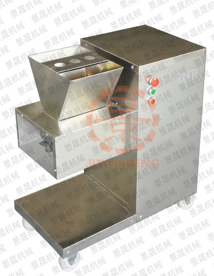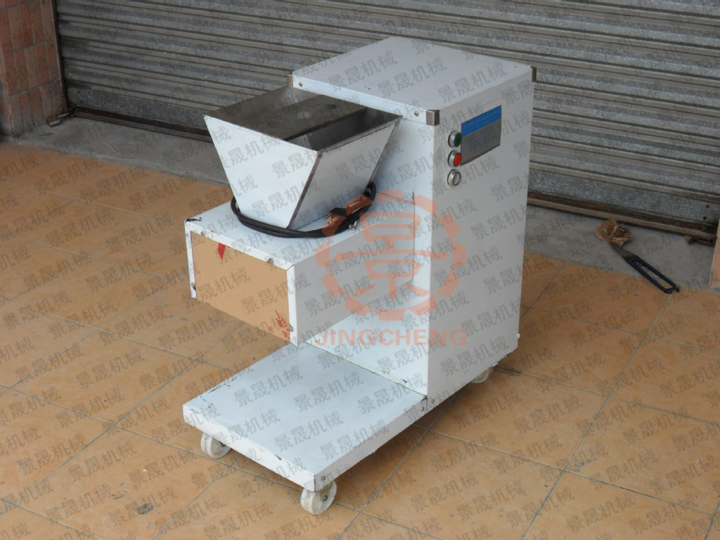 产量:800KG/小时切割厚度: 2.5mm-50mm (可根据客户要求定制)电压:220V功率:0.75KW净重:80kg规格:660×380×730(mm)立式机型,有CE认证。适合于规模稍大的餐饮或肉类加工企业,尤其适合于学校食堂和工厂食堂使用。底座有轮,灵活移动,刀具采取外置悬挂式专利设计,洗拆方便,卫生更有保障;如果要加工不同厚薄的肉片,只需换上相应的刀具就可以实现,一机多用。机内装有安全保护开关,当刀具外露时,机器自锁不能起动,以保安全。刀片用特殊不锈钢材料制造,硬度为52度,经久耐用。传动部分由皮带和摩托链条二级变速。