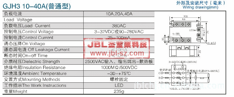 三相交流固态继电器,GJH3 10-40A普通型,杰宝莱可控硅
