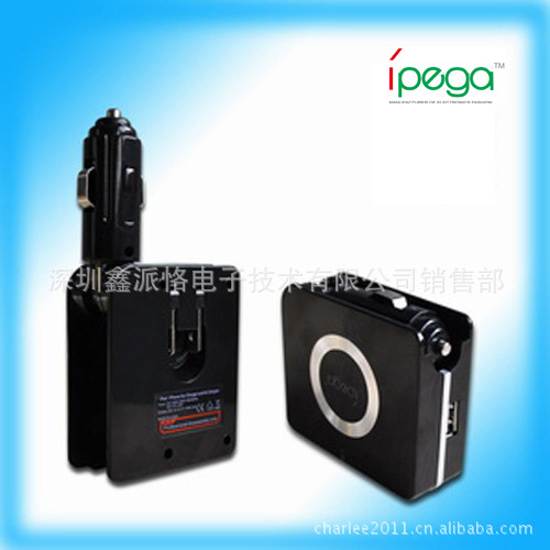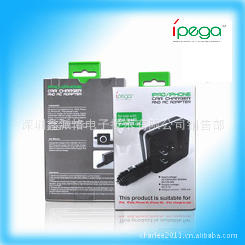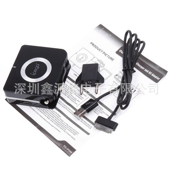 本产品适用于ipad,ipad2,ipone3G,ipone4G及ipod主机充电使用,具备车充及市电充电功能,输出端口为专用USB接口,只需连接ipad/iphone/ipod通用USB充电线即可为主机充电。 采用可旋转车充插头及美规市电插头,在不用时可收入放置槽内,便于携带和储存。