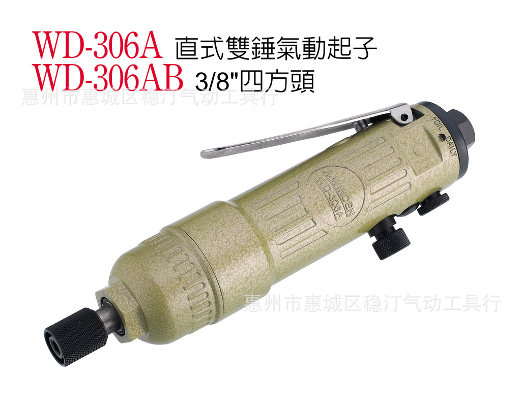型号:WD-3062 B((3/8方头)螺栓能力:6 mm~12mm扭力:75NM 转速:8000R.P.M 重量1.0kg