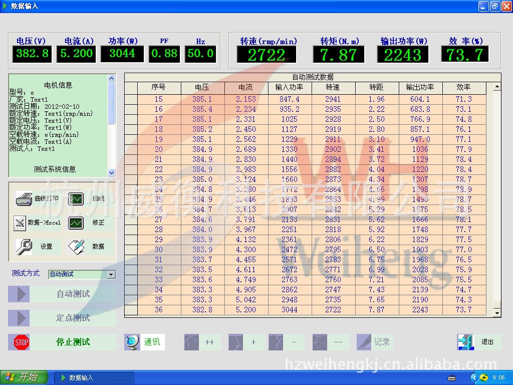 (7) 调节测功机控制仪的旋钮大小,即可改变测试电机的负载转矩的大小,能做电机制动及温升试验。