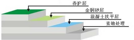 | 施工工艺: | ① 素地处理:采用喷砂或打磨等方式造成粗糙表面,清除干净,用水充分润湿; ② 混凝土找平层:用强度达到C20以上的混凝土,浇注厚度在30mm以上的水泥砂浆或50mm以上的细石混凝土; ③ 金钢砂层:先将2/3硬化剂(金属骨料或非金属骨料)均匀撒布,让材料充分吸收混凝土中水份,用抹光机械抹平;再将余下1/3硬化剂均匀撒布,抹平。当混凝土不被破坏时,再抹平,收光; ④ 养 护 层:抹平,收光后之立即涂一层养护层养护; ⑤ 施工完成:24小时后方可上人,7天后方可重压,(以25°C为准,低温开放时间需适度延长)