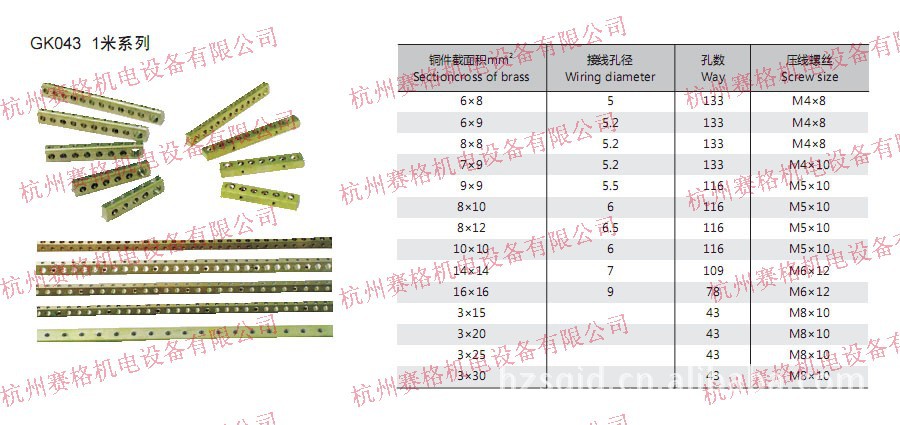 GK043 1米系列,黄铜条接地端子排 接零接地铜条铜排接线端子