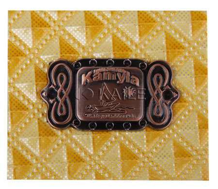 供应金属皮牌 皮底金属牌 黄白相间菱形网格 皮革皮牌