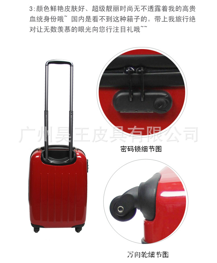 广州昊王箱包有限公司是一家集生产为一体私营有限责任公司,毗邻白云机场,从白云机场到我司不到20分钟车程,交通便捷。公司创办于2007年,现注册资金50万元,固定资产3000万元,,厂房面4000多平方米,月产量可达30万只,是一家专业设计、生产各式箱包手袋皮具的专业生产厂。本公司具有丰富的生产经验,除生产自主研发设计的产品外,同时还可以根据客户需要设计和生产产品。经研发人员的长期努力,公司产品现已经有300多个品种,如箱包、拉杆箱、ABS拉杆箱、PC拉杆箱、商务登机拉杆箱、旅行箱、电脑袋、航空箱、拉杆背包、公文包、拉杆箱、、PC箱、登机箱、拖轮箱、圆点拉杆箱、ABS拉杆箱、新秀丽品质箱包、明星箱包、经典箱包、阿童林箱包、航空箱、皮革箱、儿童拉杆箱、工艺箱包、模特箱包、学生书包、手提包等。产品远销日本、香港、台湾、全球、奔驰、台湾雅芳是我司长期合作的顾客,不断提高产品档次,保证产品质量是公司200员工追求的永恒目标。欧美等国家和地区,公司本着以诚实!守信的原则!深受顾信赖! 本厂拥有优秀的设计生产销售队伍,能把专业知识与市场紧密结合,不断开发出既有特色又受市场欢迎的新产品,使我们的产品一直走在同行的前列,具有较强的竞争力。生产部门实行科学化管理执行国家标准,各环节紧紧配合,产品每针每线都必经严格质检,产品质量一直得到客户肯定。