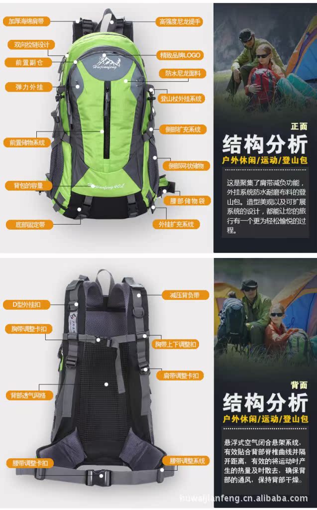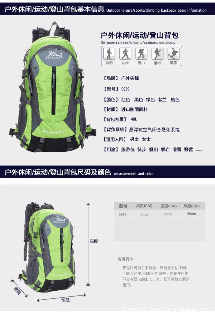 户外尖锋品牌登山包生产商 批发定做40L户外登山包 情侣款