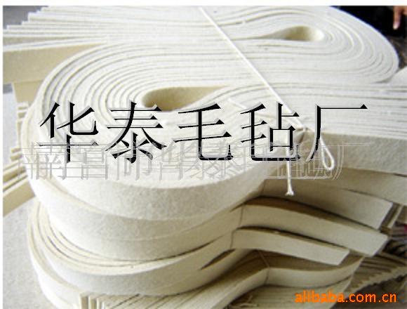 南宫市华泰毛毡厂专业生产高品质工业用毛毡,毛毡条。产品材质为进口澳洲细白羊毛。产品特点;品质高 结构好 密度大 弹性好 薄厚均匀 两表面平滑 毛质细腻。产品特性;耐高温 耐高压 耐腐蚀 耐磨。1) 材料致密性好,不易泄露介质;2) 有适当的机械强度和硬度;3) 压缩性和回弹性好,永久变形小;4) 高温下不软化,不分解,低温下不硬化,不脆裂;5) 抗腐蚀性能好,在酸,碱,油等介质中能长期工作,其体积和硬度变化小,且不粘附在金属表面上;6) 摩擦系数小,耐磨性好;7) 具有与密封面结合的柔软性;8) 耐老化性好,经久耐用;9) 加工制造方便,价格便宜,取材容易。产品广泛应用于机械机器,纺织皮革机械,电子机电,矿山机械,钢琴乐器,体育运动器材,家具,汽车,飞机,船舶等行业,具有密封防尘,防震缓冲,保温隔热,吸油储油,过滤,衬垫,清音隔音等作用。本厂产品分五大类:工业用细白羊毛毡 针刺化纤毛毡 彩色毛毡 耐高温毛毡和毛毡制品.其中毛毡制品包括:毛毡筒 毛毡套 毛毡输送导带 毛毡滤芯 毛毡抛光轮 毛毡油封 毛毡油刷 乐器用毡 体育运动器材用毡 办公文具用毡 各种规格的毛毡环 毛毡条 羊毛磨头 毛毡胶带 家具护垫 吸油毛毡条 抛光羊毛球 毛线轮等。