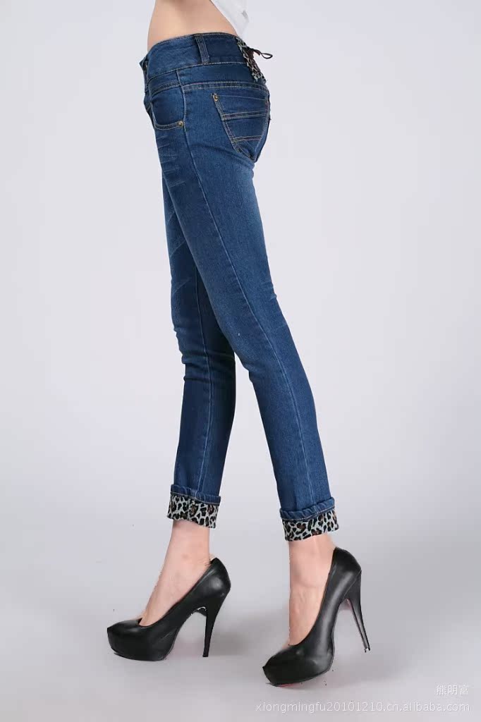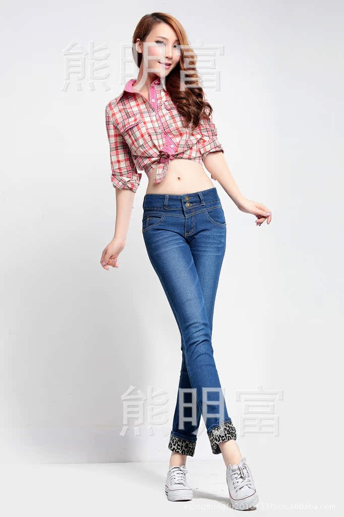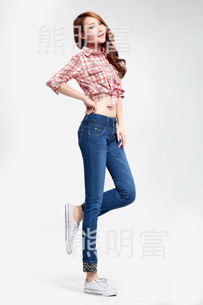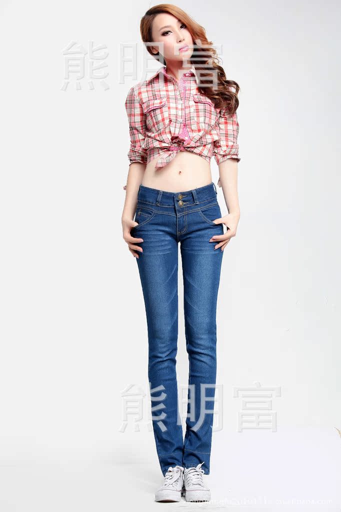 【款式】:女式 中腰 牛仔长裤 弹力 铅笔裤