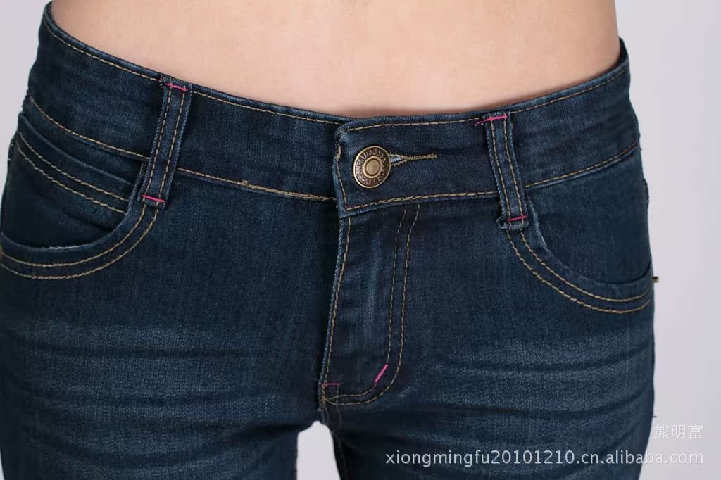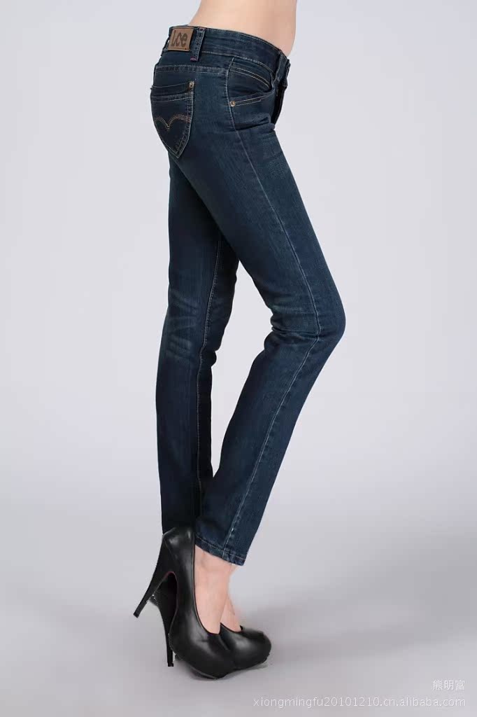【款式】:女式 中腰 牛仔长裤 弹力 铅笔裤