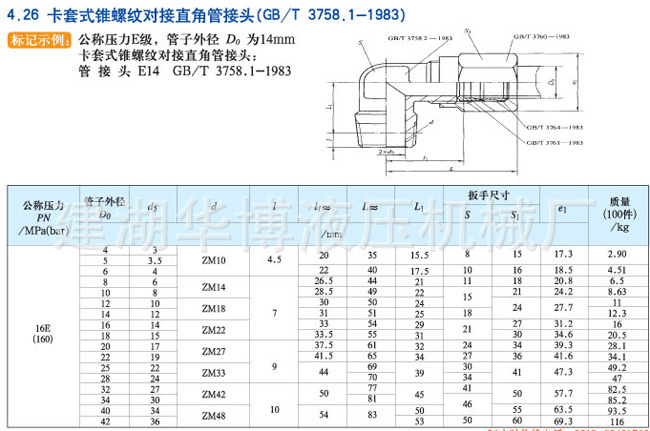 建湖华博液压机械制造有限公司生产JB、GB、JB/ZQ、Q/ZB、KJ类等标准管接头和各类DIN、UNF螺纹标准的全系列液压管接头(卡套式、焊接式、扩口式)、快速接头,管夹JB/ZQ408Ⅰ、Ⅱ型(尼龙、重型、轻型、船用),高压法兰,分体法兰等。