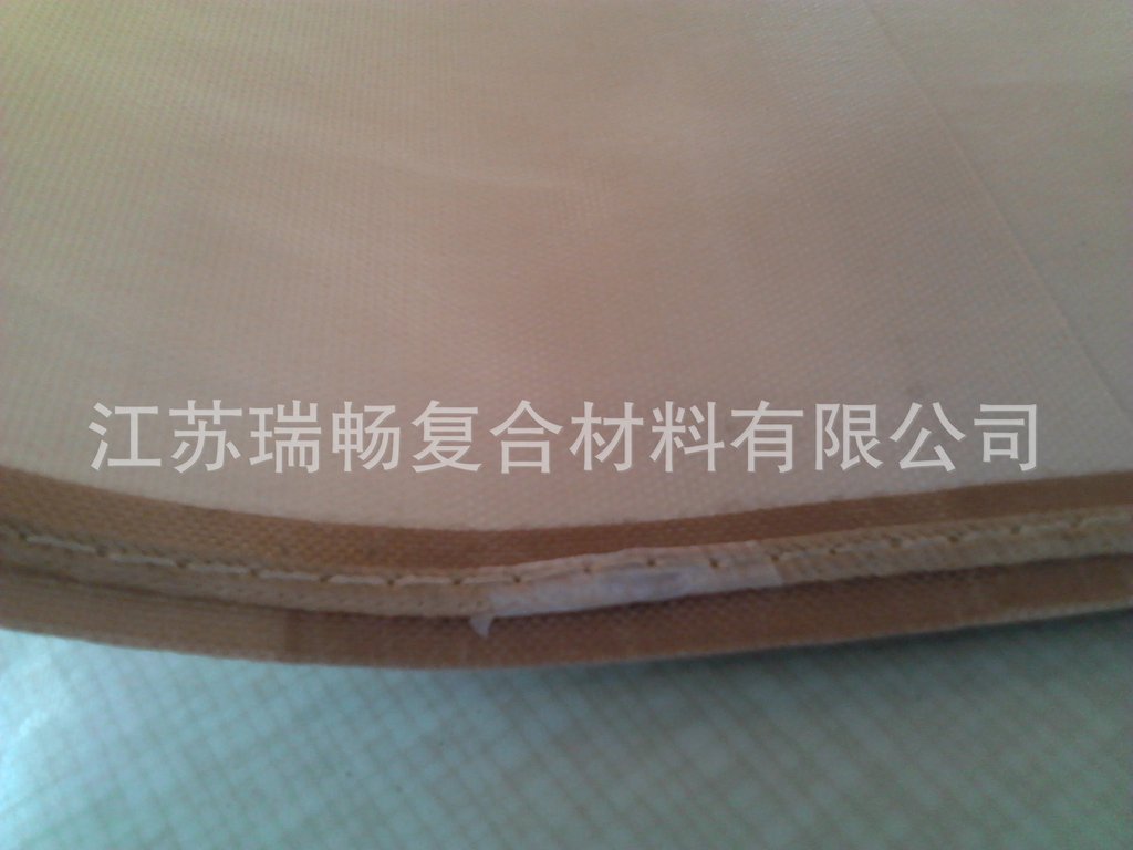 带轨输送带系铁氟龙高温布经特殊工艺加工而成,双边用凯芙拉布进行了加强,单边或双边都可固定5*5凯芙拉导条,广泛应用于机械传动设备,有耐高温,防跑偏,寿命长等特点。