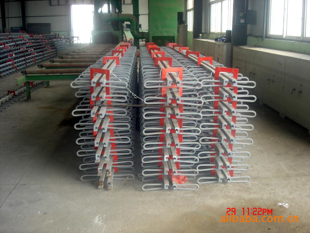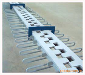 为满足桥面变形的要求,通常在两梁端之间、梁端与桥台之间或桥梁的铰接位置上设置伸缩缝。伸缩缝的构造要求 要求伸缩缝在平行、垂直于桥梁轴线的两个方向,均能自由伸缩,牢固可靠,车辆行驶过时应平顺、无突跳与噪声;要能防止雨水和垃圾泥土渗入阻塞;安装、检查、养护、消除污物都要简易方便。 在设置伸缩缝处,栏杆与桥面铺装都要断开。伸缩缝的类型 1)镀锌薄钢板伸缩缝。在中小跨径的装配式简支梁桥上,当梁的变形量在20—40mm以内时常选用。 2)钢伸缩缝:它的构造比较复杂,只有在温差较大的地区或跨径较大的桥梁上才采用。钢伸缩缝也宜于在斜桥上使用。 3)橡胶伸缩缝。它是以橡胶带作为跨缝材料。这种伸缩缝的构造简单,使用方便,效果好。在变形量较大的大跨度桥上,可以采用橡胶和钢板组合的伸缩缝。伸缩缝型号: 伸缩缝按照性能及安装方法可以分为:GQF-C型、GQF-Z型、GQF-L型、GQF-F型、 其中GQF-MZL型数模式桥梁伸缩缝装置,是采用热轧整体成型的异型钢材设计的桥梁伸缩缝装置. GQF-C型、GQF-Z型、GQF-L型、GQF-F型伸缩缝装置适用于伸缩量80mm以下的的桥梁接缝, GQF-MZL型伸缩缝装置是由边梁、中梁、横梁和连动机构组成的模数式桥梁伸缩缝装置,适用于伸缩量80mm-1200mm的大中跨度桥梁. 公路桥梁伸缩装置分为:模数式桥梁伸缩装置和KS伸缩装置以及TST弹塑体伸缩装置 一、模数式桥梁伸缩装置 模数式桥梁伸缩装置分为:GQF-C型桥梁伸缩装置、GQF-MZL型桥梁伸缩装置 1、GQF-C型桥梁伸缩装置特点: 建筑高度低,国产热轧整体成型异型钢材高度仅50mm,结构简单,安装方便,具有明显的可靠性、舒适性和耐久性。既方便旧伸缩装置更换,又可供新桥时选用。 选用原则: 桥面铺装层厚度≥80mm 伸缩量≤80mm 2、GQF-MZL型桥梁伸缩装置特点: MZL型伸缩装置结构突出的特点是:由边梁、中梁、横梁、位移控制系统、密封橡胶带等构件组成的系列伸缩装置。该伸缩装置的承重结构和位移控制系统分开,二者受力时互不干扰,分工明确,这样既保证受力时安全,又能达到位移均匀,使所有中梁在一个位移控制箱内均支承在同一根垂直横梁上的传统作法,这样对大位移量伸缩装置非常有利,减少了横梁数量,使位移控制箱体积减小到最小范围,节约了钢材。该结构还克服了斜向支承式伸缩装置要求加工和组装精度相当高的苛刻条件,否则四连杆结构极易出现自锁现象,影响伸缩自由和不易保证位移均匀的弊病。该结构各连接处均采用既能转动又能滑动结构。所以,对弯、坡、斜、宽桥梁适应能力强,可满足各种桥梁结构使用要求。 二、KS系列跨越式伸缩缝 KS系列跨越式伸缩缝是公司最新开发的一种新型伸缩缝产品,它 仅用桥面铺装层厚度即可达到可靠的锚固,对桥梁设计和施工单位提供了极大的方便。同时它防水性能好,减震,受力合理,对梁端间隙的施工误差不敏感,使 用寿命长,自动清理缝内垃圾,少养护,造价低。因此该产品一经问世,即受 到桥梁设计和施工单位的普遍好评。 KS系列跨越式伸缩缝的标注: 伸缩缝长度(m) 伸缩量(mm) KS系列伸缩缝 例1:KS(Ⅰ)140—12.5 表示伸缩量140mm的KS(Ⅰ)系列伸缩缝一条,长12.5米。 例2:KS(Ⅱ)70—13.7 表示伸缩量70mm的KS(Ⅱ)系列伸缩缝一条,长13.7米。 KS系列跨越式伸缩缝有KS(Ⅰ)与KS(Ⅱ)两种型号,每种型号根据伸缩量的不同分为:KS(X)20、KS(X)30、KS(X)40、KS(X)50、KS(X)60、KS(X)70、KS(X)80、KS(X)90、KS(X)100、KS(X)120、KS(X)140、KS(X)160、KS(X)180、KS(X)200、KS(X)250、KS(X)300、KS(X)350、KS(X)400十八种规格。 三、TST(改性沥青)弹塑体桥梁伸缩装置 1、原理: 将专用的特制的弹塑体主料RS橡胶加热溶溶后,灌入经加热的碎石中,形成“TCS桥梁接缝弹塑体”。碎石支持车辆载荷,TCS-Z专用粘合剂保证界面强度。 2、特点: a.TCS弹塑体直接平铺在桥梁界缝处,与前后的桥面或路面铺装形成连续体,桥面平整无缝,行车比有缝的桥自然更平稳、舒适、无噪音、振动小,且具有便于维护、清扫、除雪等优点。 b.构造简单,不需装设专门的伸缩构件和在梁端预埋锚固钢筋,施工方便快速,铺装冷却后,即可开放交通。 c.这种弹性接缝能吸收各方面的变形和振动,且阻尼性高,对桥梁减震有利,可满足弯桥、坡桥、斜桥、宽桥的纵横竖三个方向的伸缩和变形。 d.因接缝和桥面铺装连成一体,故密封防水性好,且耐酸碱腐蚀。 e.旧桥更换伸缩缝,可半边施工,对交通繁忙路段不中断交通。 f.造价低、耐用、养护更换少,经济效益和社会效益显著