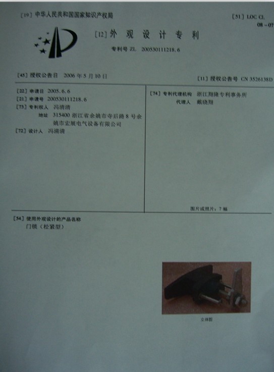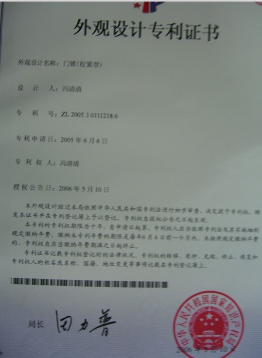 本款产品系公司专利产品,一经发现仿冒我厂产品,必严查到底。欢迎各位客户举报取证,有高额奖金答谢。以下是我司外观设计专利证书!