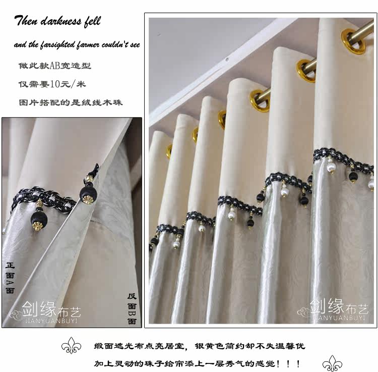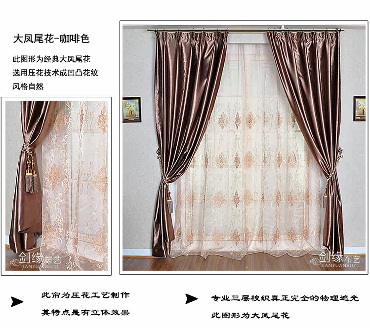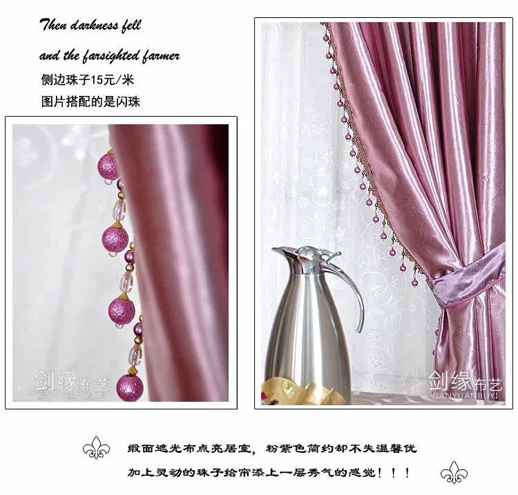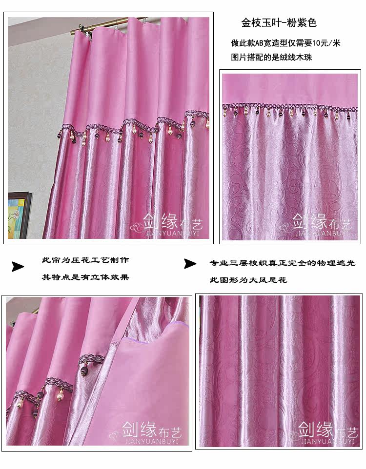 品名 | 工程遮光布(多色) | 品牌 | 剑缘布艺 | 面料 | 型号 | 门幅 | 单价/米 | 材质 | 工艺 | 遮光度 | 厚度 | 成品包装重量 | 布帘 | ZQDB-1 | 2.8 | 30元/米 | 一级遮光布 | 进口机压花 | 90%左右 | 厚 | 0.8Kg/米 | 纱帘 | / | / | / | / | / | / | / | / |