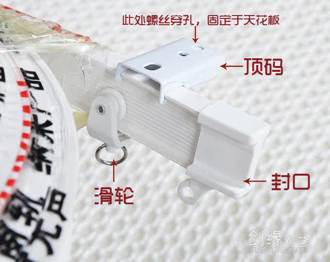 买家提问一:3种轨道有什么区别? 答:一;安装位置不同,顶片轨道和顶码轨道安装在天花板或者窗帘盒里,墙码轨道是安装在窗户所在的墙面上的。 二;三种轨道只是配件不同,轨道是相同的。 三;顶码轨道和顶片轨道的区别在于安装顶码轨道比安装顶片轨道相对简单,顶码轨道是先固定顶码,再把轨道卡在顶码上就好(顶码里有弹簧),顶片轨道需要把顶片和轨道同时安装。 提问二:轨道配件不够怎么办? 答:以本店多年的经验,标配的数量已经够用了。但是您要是觉得不够,也可以再另外购买 答:如果窗帘是整面墙安装,轨道长度就按整面墙的宽度购买;如果只是挡住窗户,轨道的长度比窗户每边宽20到40公分即可;飘窗按墙面宽度购买轨道;双轨的用量为单轨的2倍即可,详细介绍请点击以下链接:窗帘测量设计安装 提问五:哪种轨道可以装双轨? 答:墙码轨道是不能装双轨的,因为没有相应的安装支架;顶片轨道和顶码轨道安装成双轨是可以的,虽然也没有相应的支架,但是可以把两条单轨并排装,两条轨道的间距在5-8厘米左右 提问六:如果我要30米轨道要如何运输? 答:轨道任意米长都可以运输,因为我们是卷起来寄的。所以为了运输方便,如果您买多根的话,我们给您一共的米数,您自己裁比较好,不要用剪刀去尝试,用普通的锯条可以裁,锯条一般的五金店里有卖的,0.3-0.5元一根;如果您要求我们给您锯好,麻烦您一定要在备注里说明您要的尺寸, 提问七:如何安装? 答:先简单介绍一下,还有不明白,可向客服或者掌柜的咨询