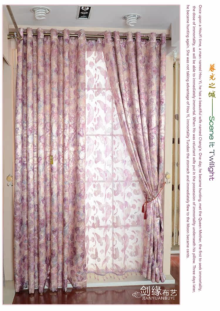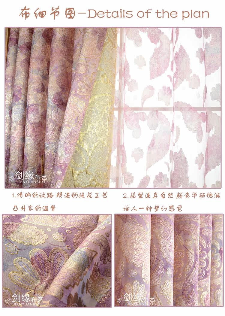 品名 | 暮光之城 | 品牌 | 剑缘布艺 | 面料 | 型号 | 门幅 | 单价/米 | 材质 | 工艺 | 遮光度 | 厚度 | 成品包装重量 | 布帘 | 暮光之城 | 2.8 | 98元/米 | 金皮色织布 | 提花 | 70%左右 | 厚 | 0.8Kg/米 | 纱帘 | 暮光之城 | 2.8 | 70元/米 | 金丝窗纱 | 剪花 | 20%左右 | 薄 | 0.3Kg/米 |