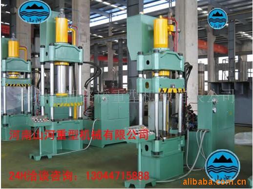 液压机性能特点:三梁四柱式结构,经计算机优化设计,简单、经济、适用。液压控制系统采用插装阀集成系统,动作可靠,使用寿命长,液压冲击小,减小了连结管路与泄漏点。独立的电气控制系统,工作可靠,动作直观,维修方便。采用按钮集中控制,设调整(点动),单次(半自动)二种操作方式。可实现定程,定压二种成型工艺,并具有保压延时等性能。工作压力、行程根据工艺需要在规定的范围内可调。