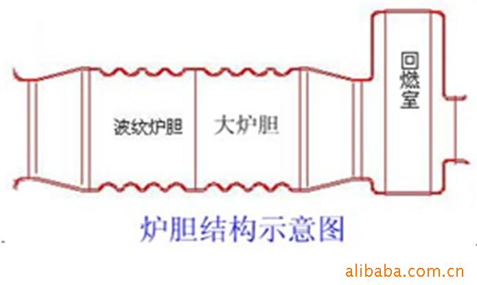 采用国内外先进的大炉膛设计技术,在原有的传统设计上增大炉膛的直径,增加炉膛的幅射换热面积,使锅炉的换热以幅射换热为主,既减少二、三回程的换热负担,同时让燃料充分燃烧,减少有害气体生成量。同时,炉膛的高温区采用的波纹炉胆技术既增加了辐射换热面积,又对烟气的运动起了一个阻流作用,使辐射换热效果更明显;波纹炉胆既增加了炉胆整体强度,又能自动补偿炉胆的热伸缩应力,避免了管板因热应力变化而引起焊缝开裂等缺陷。因此,对不同燃料具有较强的适应性,可燃烧重油、轻油、天然气、城市煤气。