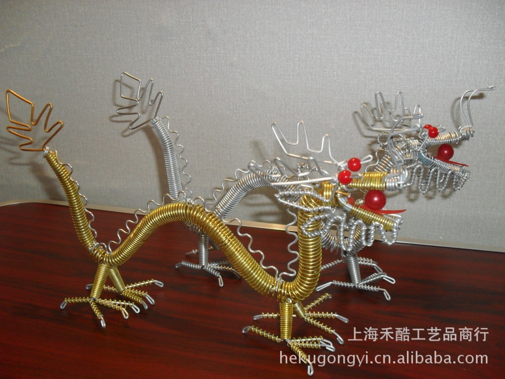 - 中国龙。 纯手工铝丝制作,做工精细,价格合理。深受市场欢迎,市场广阔,更是旅游地不可多得的好产品。不生锈,不褪色,是家居摆设,个人收藏馈赠亲友的佳品。可根据要求设计定做