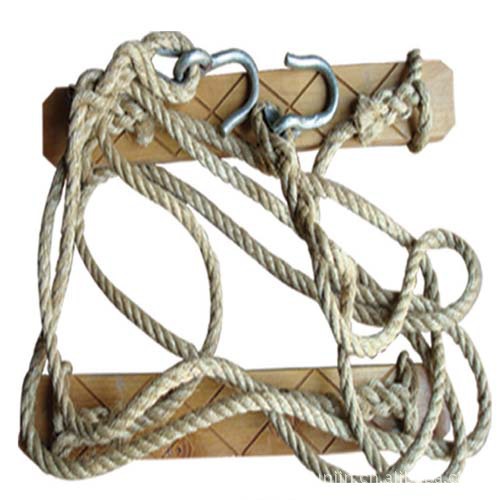 结构特征是木踏板在两侧相应位置切去与固定板相同厚度一块,用固定板将绳索卡住并用木螺钉紧固在木踏板两端的两侧面。彻底解决了绳索与木踏板上滑动、滑脱的问题,具有结构简单,实用可靠的特点。
