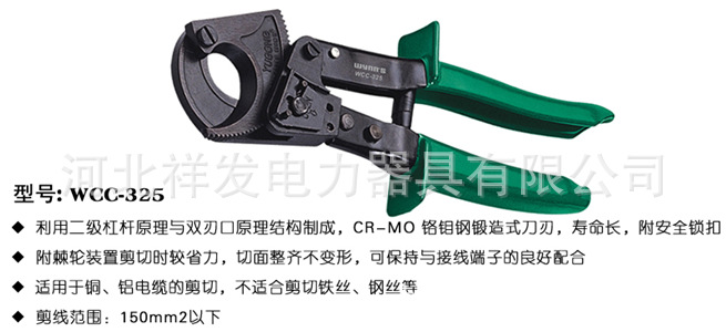 用途:用于各种材质导线的切断,以及钢丝绳、钢索、圆钢的切断。