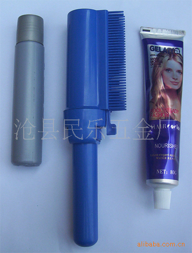 本实用新型是便民实用产品,本产品握手部即为容染发膏的空腔,梳把腔内有推拉密封活塞,推动活塞,染膏会自动压至梳齿,完成染发过程。本实用新型的有益效果是:经常地梳理,经常地染发,家庭常备,使用方便,花费经济,清洁卫生。市场前景肯定看好,我们可以看到现在40岁左右的中年人"白发"者达50%左右,随着城市老龄化进程加快,老年人群体越来越多,老年朋友也希望自己变得"年轻"一点,青年朋友现在局采油的也很多。所以美容院、理发店、染发商制剂单位,广大染发群体均是本产品的有效市场。 染发美发是现代生活中的一个热门话题,随着人们生活水平的日益提高,大家对生活目标的追求也不断地更新. 头发是人体最首位的美,拥有一头乌黑靓丽的秀发,是人们对容貌追求的新时尚. 本产品与传统染发相比具有更多的优越性,是目前国内外其它产品所不可替代的,多功能高级焗油染发梳是一种集染发、摩丝、焗油、去屑为一体的新产品。 该产品的独特之处有: ①染发快速,染发后有效期长,能渗入头发内部,色泽自然、均匀,没有斑白、黄、棕等颜色混杂,发干发梢不出现两种颜色,经得起风吹和强阳光灼晒。 ②染后头发滋润、饱满、疏密适中、触之柔软,不粗、不硬、不纤细、不过软,同时不分叉,不打结。 ③可按摩各部位,有效地去除疲劳,增强头皮的细胞活力,促进头发再生。 ④自行操作染发,5分钟可染好各种颜色的头发,使用灵活、方便、快捷,而且实用、省时、省钱。 ⑤无毒无害,不污染头皮,并具有去头屑止痒的奇特功效。