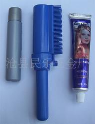 本实用新型是便民实用产品,本产品握手部即为容染发膏的空腔,梳把腔内有推拉密封活塞,推动活塞,染膏会自动压至梳齿,完成染发过程。