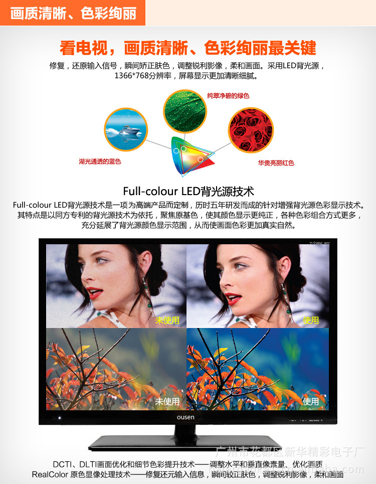 广州精彩电子厂供应22寸含USB LEDTV高清液晶电视机可OEM