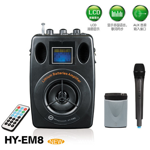 厂家直销FM收音USB/TF插卡式带混响锂电池腰带式扩音机洪韵HY-263