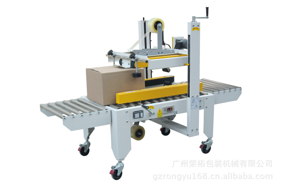 自动封箱机具有广泛的用途,适用于家用电器、纺织、食品、日用百货、药品、轻工、化工等各种行业产品包装、纸箱的封箱,可单独封箱作业,亦可与充填、捆包配套成流流水线使用,为包装标准流水线作业所必需的设备,封箱机采用即贴胶带封纸箱封口,经济快速、容易调整,可一次完成上、下封箱动作,采用印字胶带,更可提高产品形象。
